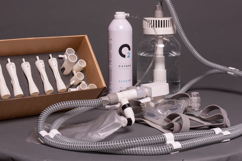 The system works by connecting hospital patients to an existing oxygen source and blends air with the high-flow oxygen supply.