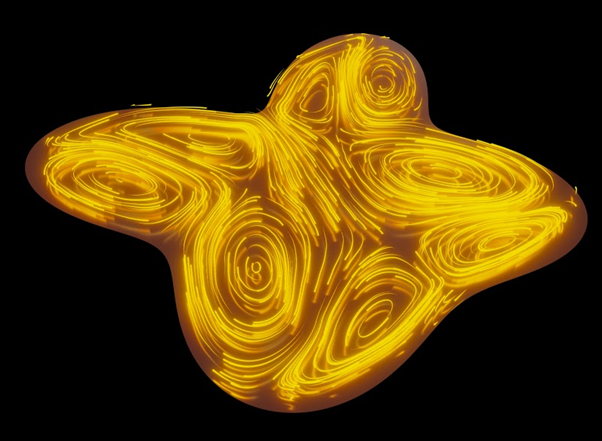 Artist's impression of a microorganism swimming in a complex environment. Visualising the fluxes of probability reveals the most likely path of the microbe. Credit: Esinam S. A. Dake, Jan Cammann, Marco G. Mazza
