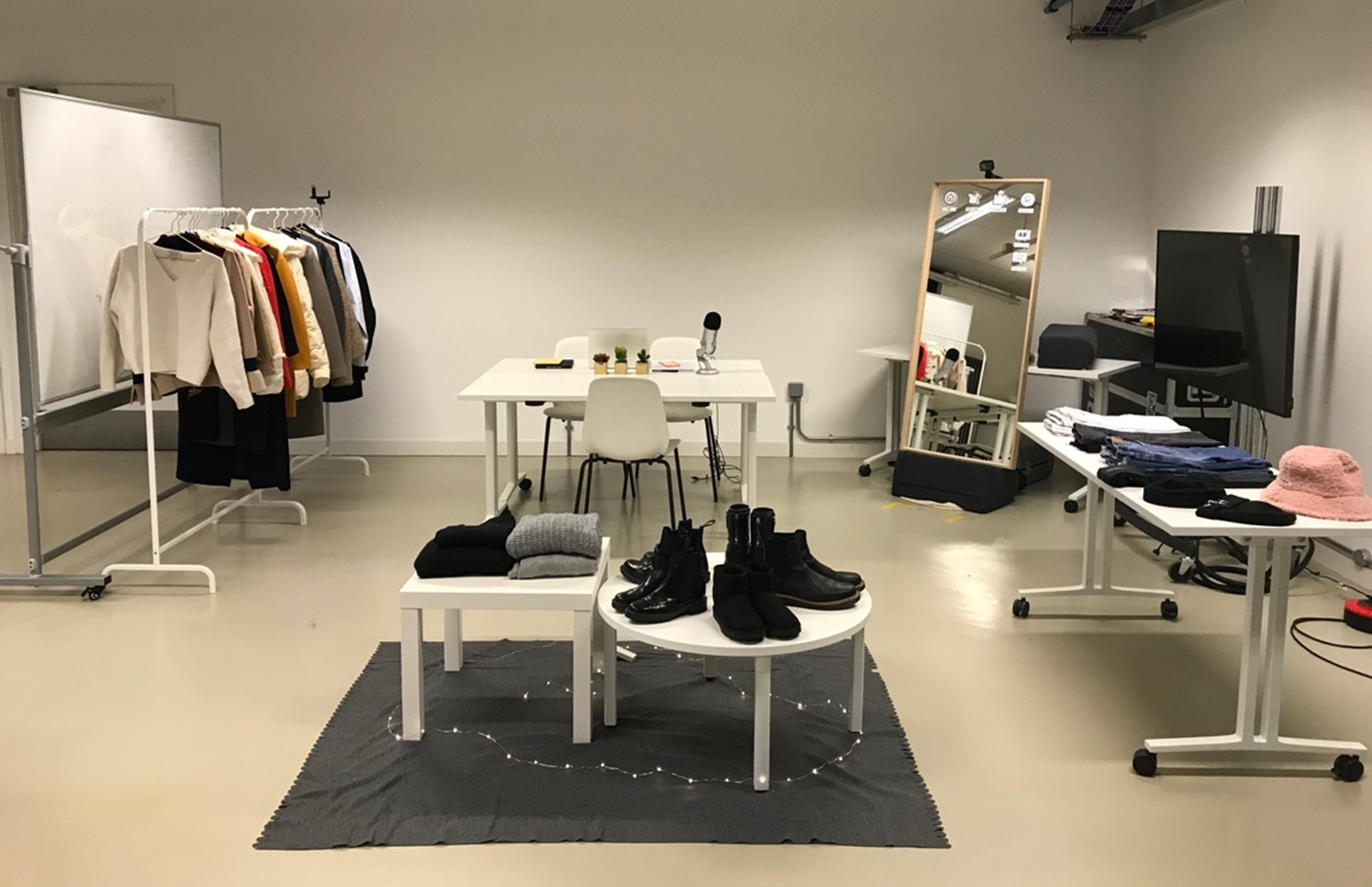 (e.g., there will be hangers next to the AR Mirror for customers to place the item temporarily when they pick an item to scan for product information). |