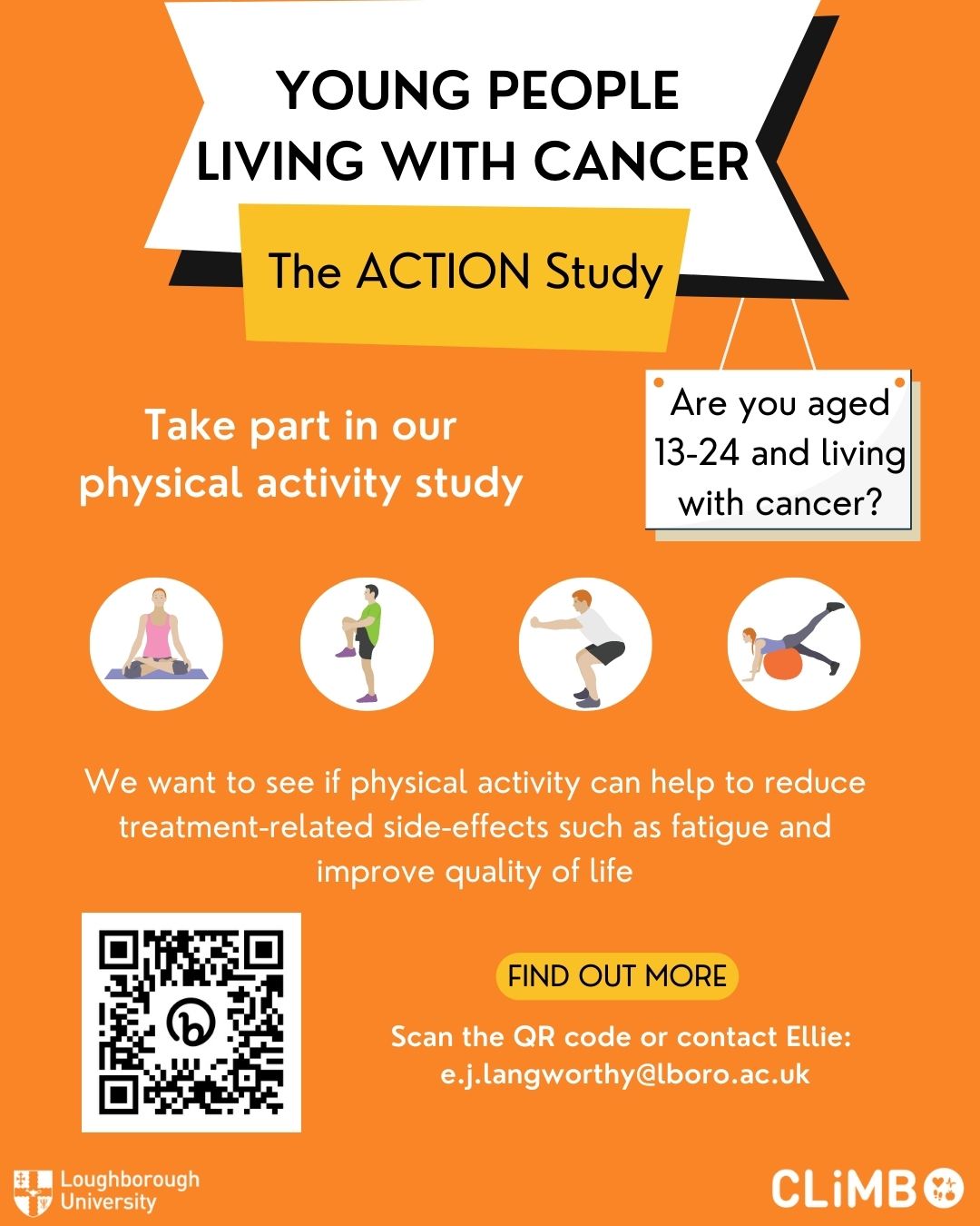 We would like to invite those aged 13 to 24 years living with cancer to take part in our new physical activity study.