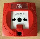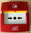 Pull the key down towards the floor. The front of the MCP will drop down, activating the alarm and triggering the sounders.
