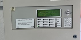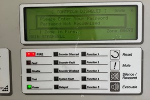 The LED display screen is showing the zone that has been activated. The red fire light is illuminated.