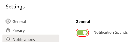 To choose if a sound plays with each new notification, select your profile picture in the top right corner of Teams, select Settings > Notifications > toggle (off/on).