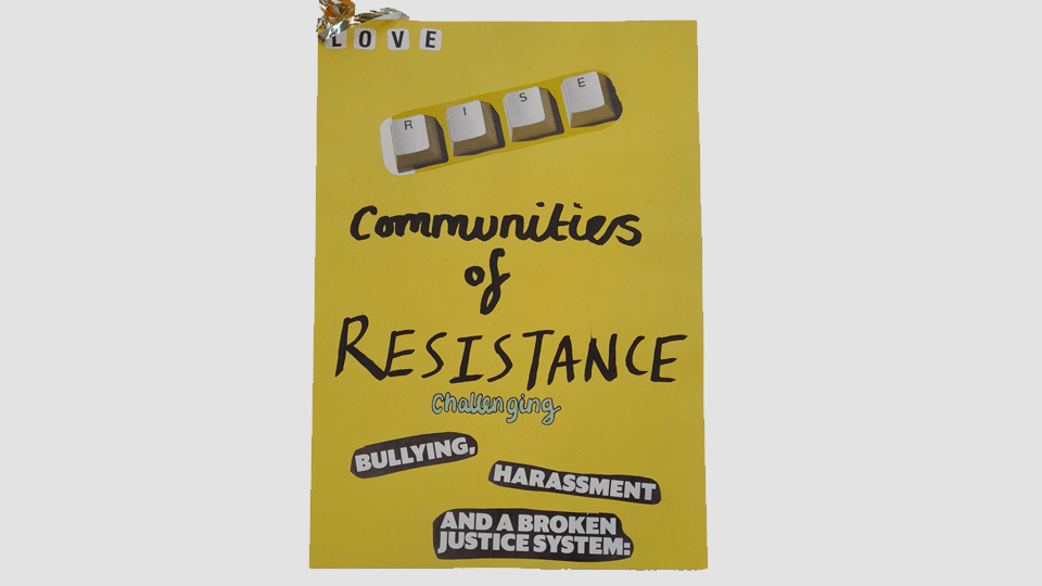 Zines are a medium that is an uncensored piece of self-published work, utilised to disrupt mainstream media with often marginalised voices. Through our collectively curated zine LOVE, RISE communities of RESISTANCE challenging bullying, harassment and a broken justice system, we explore our experiences navigating academia as Women of Colour doctoral researchers and the invisible forces that we call upon you to identify and recognise. Our zine goes beyond art catharsis, it is a powerful form of research dissemination that resonates the essence of both our research topics centred on race equity. We challenge you to breaking down your research into an expressive form that reflects your identity, how easy is it for you to put yourself in your research?